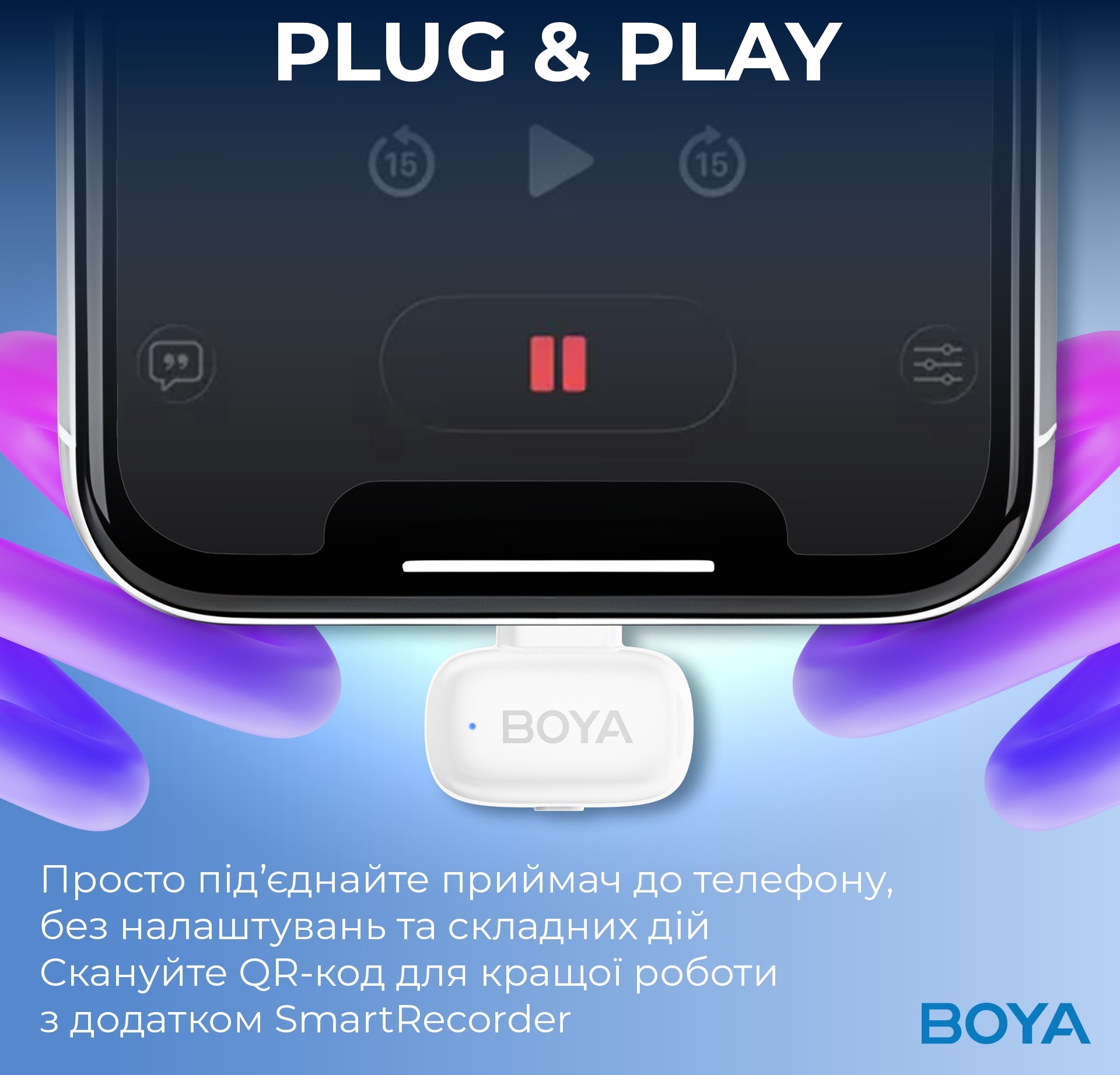 BOYA Mini — це не просто мікрофон, а потужний інструмент для творчості, упакований у найкомпактніший у світі корпус. Він поєднує професійну якість звуку, розумне шумозаглушення, творчі функції та неймовірну зручність. Обирайте BOYA Mini, щоб ваш контент завжди звучав чисто, професійно та виділявся серед інших.