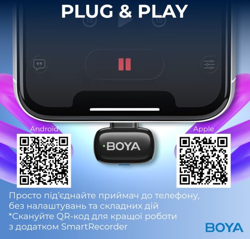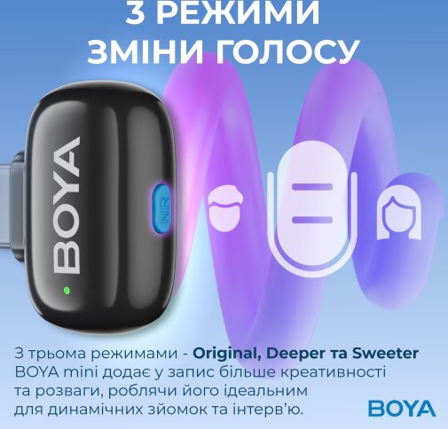 BOYA Mini — це не просто мікрофон, а потужний інструмент для творчості, упакований у найкомпактніший у світі корпус. Він поєднує професійну якість звуку, розумне шумозаглушення, творчі функції та неймовірну зручність. Обирайте BOYA Mini, щоб ваш контент завжди звучав чисто, професійно та виділявся серед інших.