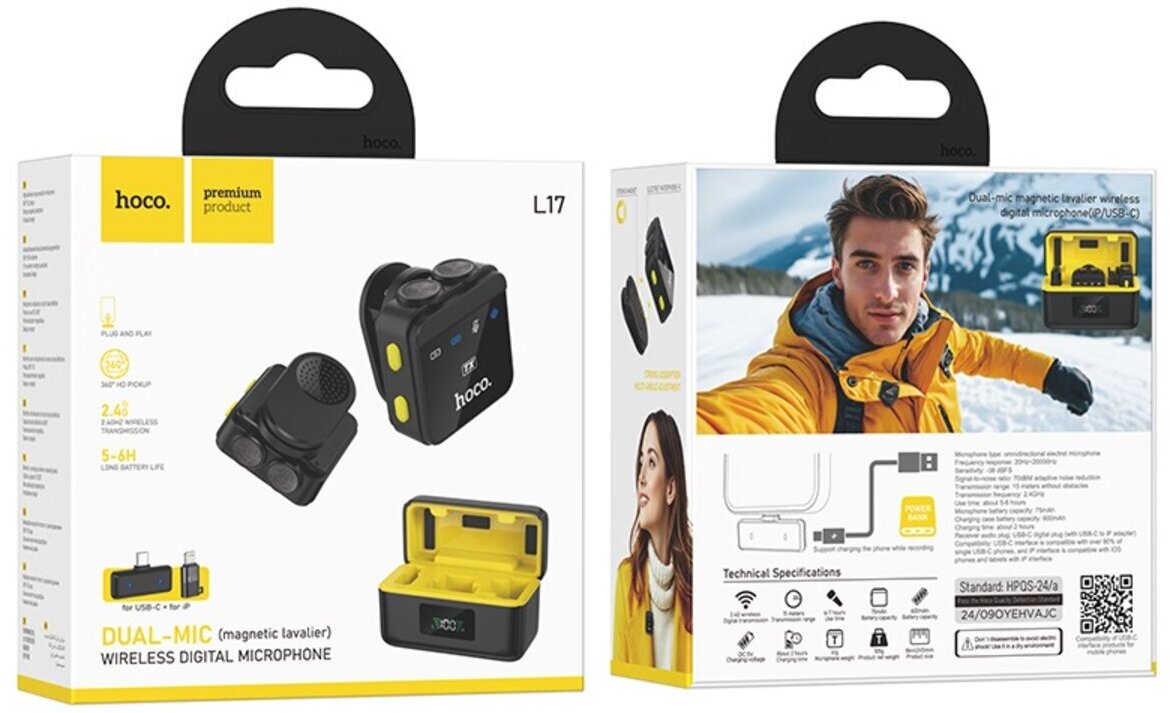 Hoco L17 Dual-mic — це стильний і функціональний інструмент, який задовольнить потреби професіоналів та любителів у записі чистого звуку. Він стане незамінним помічником у створенні якісного контенту.