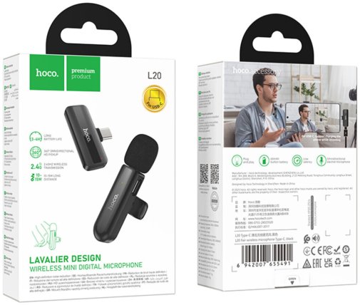 Hoco L20 Fair Type-C — це ультракомпактна бездротова петлична радіосистема з двома мікрофонами, створена спеціально для смартфонів і планшетів з роз’ємом USB-C. Вона миттєво робить ваш звук професійним, чи знімаєте ви влог, проводите інтерв’ю чи записуєте подкаст.