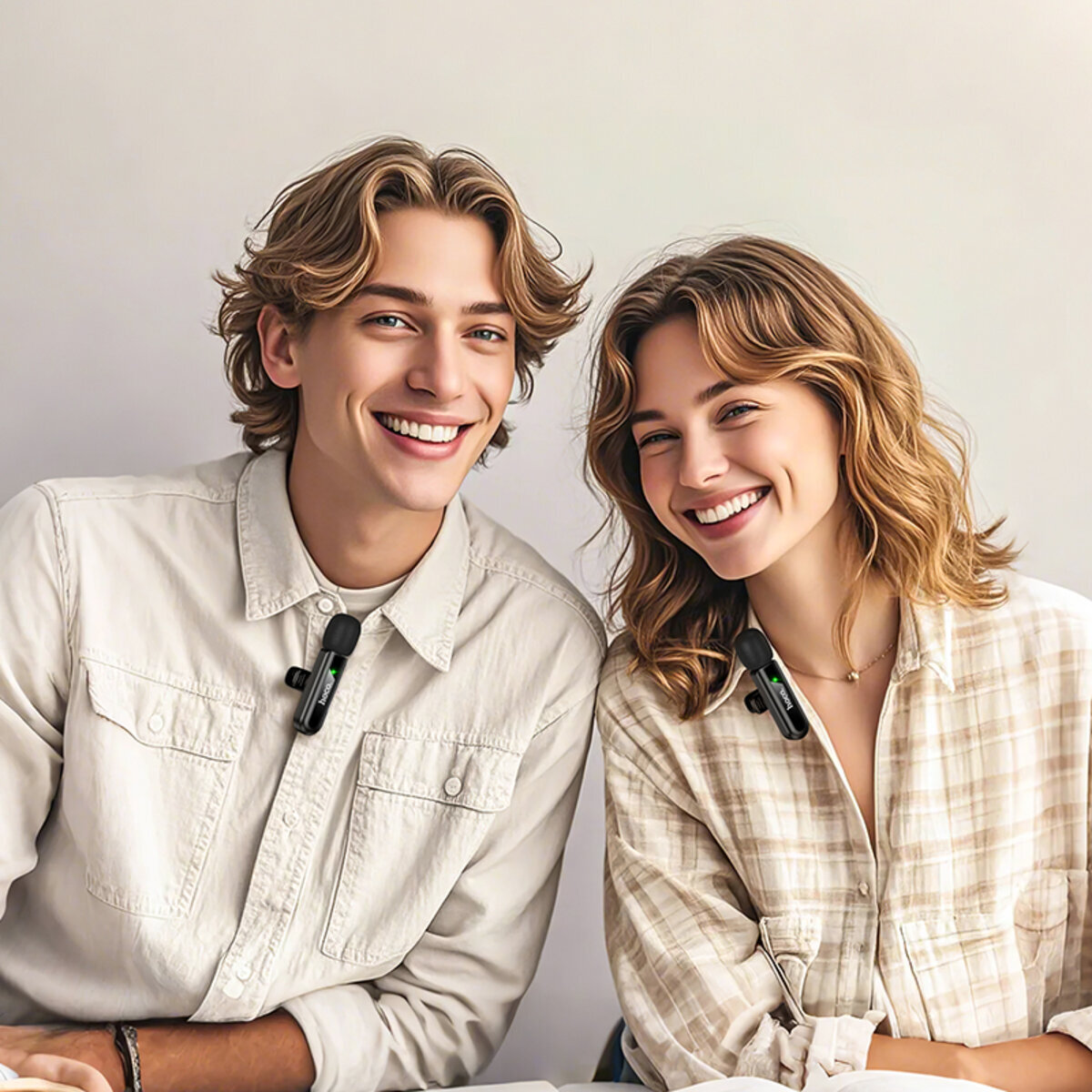 Кожен мікрофон легко кріпити на одяг чи тримати в руці — ви їх просто не відчуваєте. Вбудований акумулятор на 60 мАг забезпечує 4 години безперервної роботи, а заряджання через Type-C займає мінімум часу. Стабільний зв’язок на частоті 2.4 ГГц працює надійно до 15 метрів, навіть якщо ви рухаєтесь.