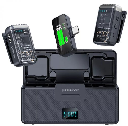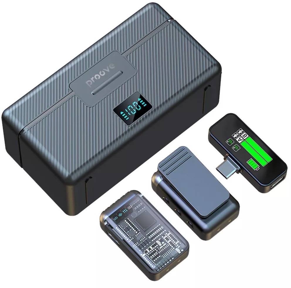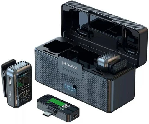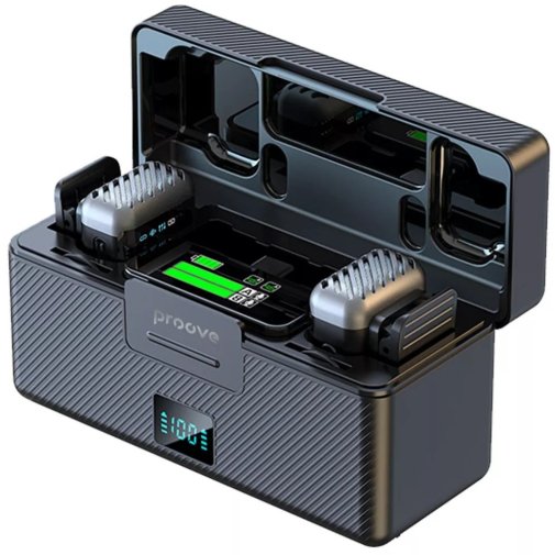 У комплекті йде зарядний кейс з місткістю 800 мАг, який дозволяє швидко підзарядити мікрофони. Легка вага та компактні розміри роблять пристрій зручним для щоденного використання. Завдяки бездротовому підключенню та універсальним роз’ємам мікрофон підходить для блогерів, журналістів та онлайн-трансляцій.