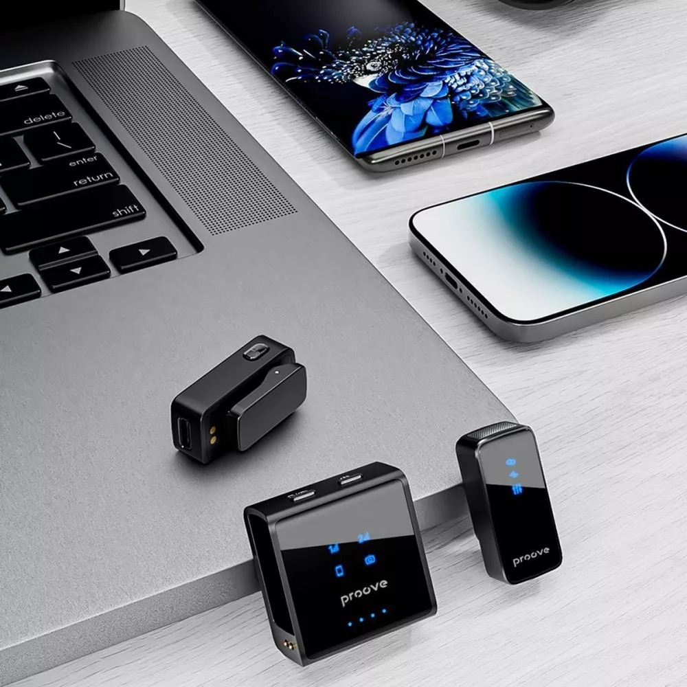 Proove ToneLine — це компактна бездротова радіосистема, створена для отримання стабільного звуку студійної якості просто “з кишені”, незалежно від умов зйомки. Вона поєднує цифрову обробку сигналу, високу мобільність і універсальну сумісність, що робить її зручним інструментом для блогерів, журналістів, стрімерів та всіх, хто працює зі звуком у русі.