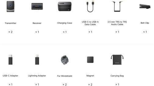 Легка, компактна бездротова радіосистема здатна забезпечити запис звуку від двох джерел. Запис звуку мовної якості та підходить для дзеркальних, бездзеркальних і відеокамер, смартфонів, планшетів, комп'ютерів та інших пристроїв. Приймач здатний працювати до 6 годин від заряду батареї. Приймач і передавачі можуть заряджатися через роз'єм USB-C від мережі або пауербанків. До комплекту постачання входить жорсткий кейс із вбудованою батареєю, здатний зарядити всі елементи радіосистеми на 150%, забезпечуючи загальну тривалість звукозапису близько 15 годин.