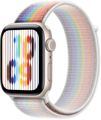 Натхненний силою та інклюзивністю ЛГБТК+ спільноти, Pride Edition Sport Loop демонструє яскравий градієнт, який поєднує основний прапор Прайду та п'ять нових кольорів: чорний та коричневий символізують маргіналізовані кольорові ЛГБТК+ спільноти, а також тих, хто зараз живе з ВІЛ/СНІДом, та тих, хто помер від цього. Світло-блакитний, рожевий та білий кольори вшановують трансгендерних та гендерно нонконформних людей.