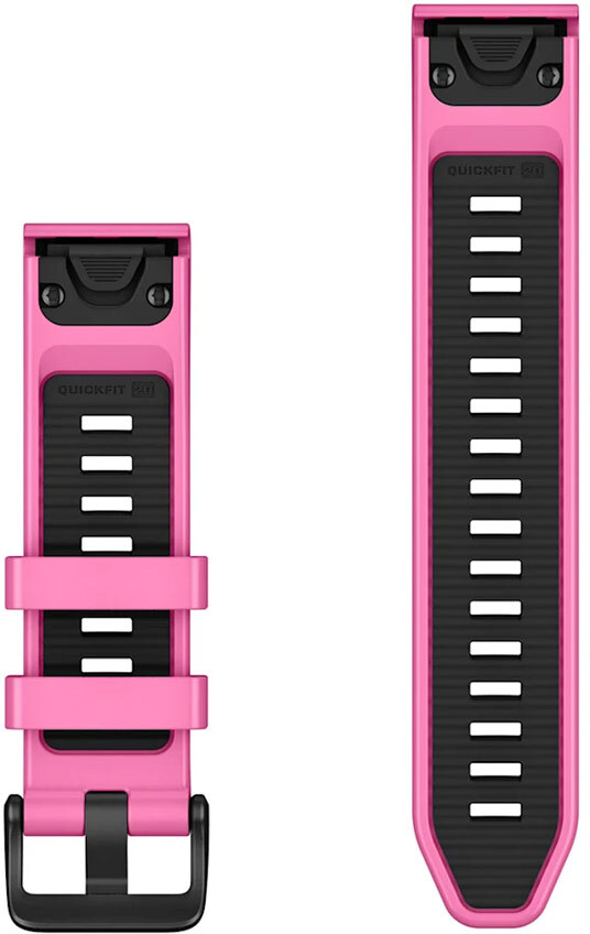Garmin QuickFit — це стильний і практичний ремінець шириною 20 мм у рожевому кольорі. Він ідеально підходить для любителів дайвінгу та активного відпочинку, дозволяючи легко оновити зовнішній вигляд сумісного годинника Garmin і адаптувати його під різні умови.