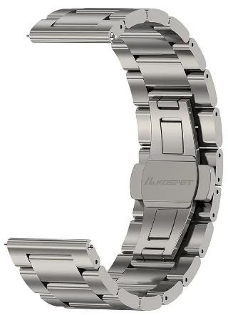 KOSPET Stainless Steel Strap — це класичний металевий ремінець для годинника, створений для тих, хто цінує солідність, міцність і строгий стиль. Виготовлений із нержавіючої сталі, він має вагу 86 г — відчувається на зап’ясті впевнено, але не обтяжує. Такий ремінець перетворює будь-який смартгодинник на аксесуар, який доречно виглядає і з костюмом, і з повсякденним вбранням.