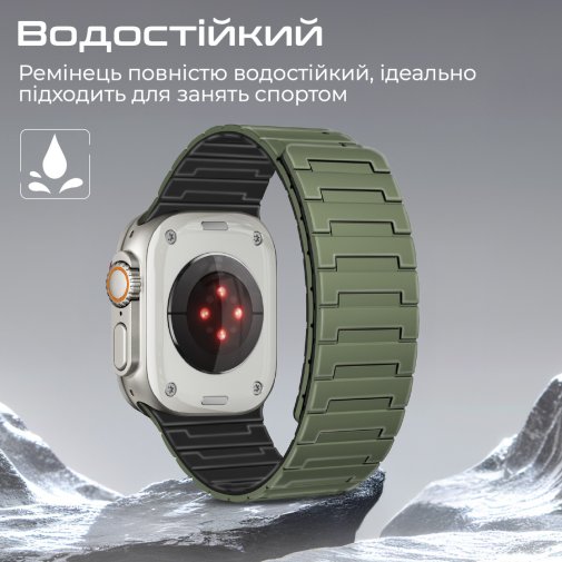 Ремінець легко регулюється під зап’ястя від 140 до 215 мм, що дозволяє підібрати оптимальну посадку для будь-якого користувача. Завдяки універсальній сумісності, Magband-MS підходить до Apple Watch серій 1–9, SE та Ultra 1–2 з розмірами корпусу 42/44/45/49 мм.