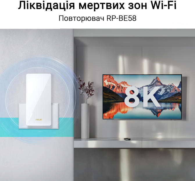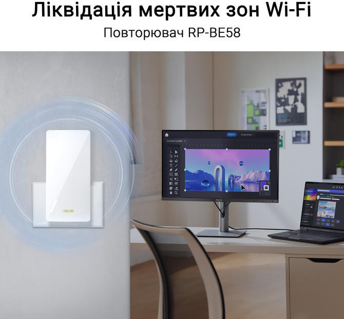 ASUS RP-BE58 — це сучасний Wi-Fi 7 репітер, який значно покращує покриття бездротової мережі у вашому домі чи офісі. Завдяки підтримці стандарту Wi-Fi 7 (802.11be) цей пристрій забезпечує високу швидкість передачі даних, до 3600 Мбіт/с, що робить його ідеальним для потокового відео у форматі 8K, онлайн-ігор, роботи з хмарними сервісами та інших завдань, які потребують стабільного та швидкого з’єднання.