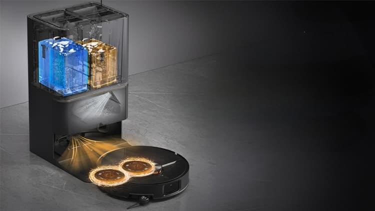 Робот обладнаний повністю автоматичною станцією самообслуговування, яка збирає сміття, миє та сушить швабри гарячим повітрям (100°С), а ультразвукова технологія виявлення килимів дозволяє скинути брудні швабри та повторно очистити килим після миття підлоги.