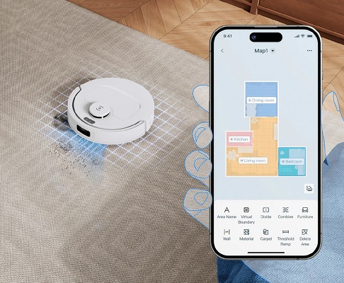 Керування здійснюється через мобільний додаток ECOVACS HOME, а власники iPhone можуть користуватися функціями Dynamic Island та Apple Watch для швидкого доступу до управління. Крім того, передбачено точкове прибирання на площі 1.5×1.5 м для швидкого видалення локальних забруднень.