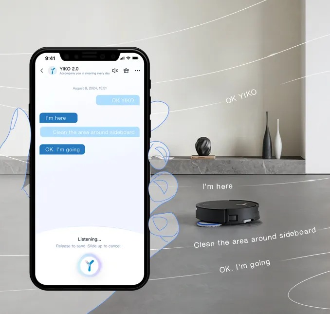 Сучасна взаємодія включає голосового асистента YIKO-GPT, який розуміє природні команди та дає персоналізовані поради. Завдяки підтримці Matter робот легко інтегрується у Google Home, Apple Home чи Samsung SmartThings.