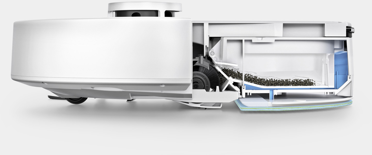 Точну орієнтацію у просторі забезпечує система навігації LiDAR, яка сканує приміщення, створює детальні карти та дозволяє роботу систематично прибирати навіть у темряві. Через мобільний застосунок по WLAN можна зберігати карти кількох поверхів, встановлювати заборонені зони, задавати індивідуальні параметри для кожної кімнати, регулювати силу всмоктування, витрату води та кількість проходів, а також запускати прибирання віддалено або за розкладом. Робот також інформує користувача про свій стан за допомогою голосових повідомлень.