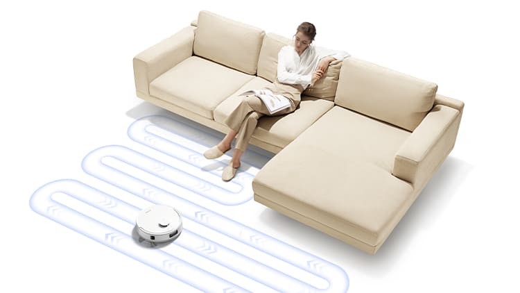 Лазерний датчик (LDS) та ультразвуковий сенсор для килимів забезпечують точне розпізнавання перешкод і автоматичне посилення всмоктування на ворсистих поверхнях. Робот використовує технологію Smart Pathfinder та сканування на 360°, швидко створюючи карту вашого будинку для оптимальної продуктивності прибирання.