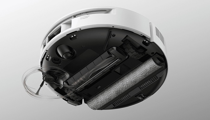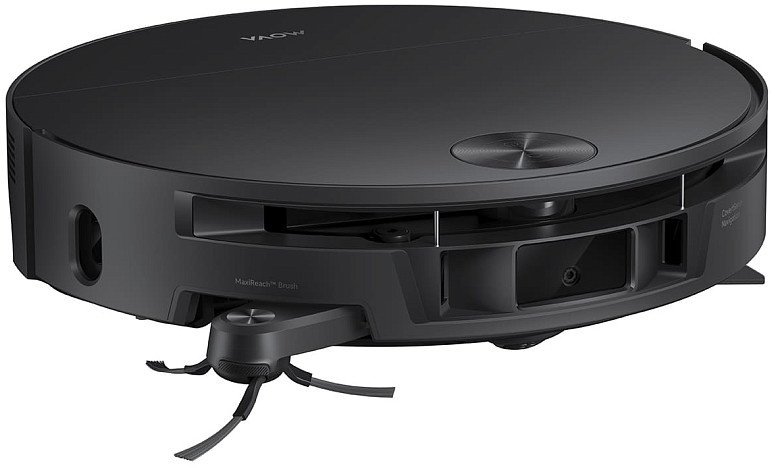 Ще одна важлива інновація — висувний механізм MaxiReach, який дозволяє роликовій щітці виходити за межі корпусу до 4,4 см. Завдяки цьому робот реально дістає до плінтусів і кутів, де зазвичай залишається смуга пилу. У поєднанні з системою подачі води це забезпечує повноцінне миття навіть уздовж стін і в складних зонах.