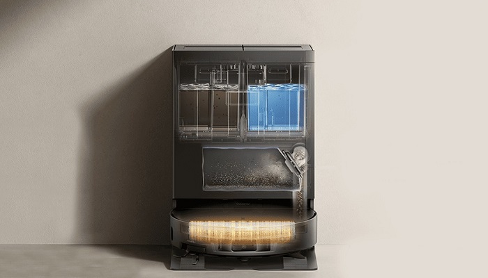 Після прибирання робот повертається на станцію, де відбувається гігієнічне обслуговування: ролик промивається водою до 80°C, що розчиняє жир і знищує бактерії, а потім сушиться гарячим повітрям, запобігаючи запахам і появі плісняви. Відпрацьована вода та сміття автоматично збираються у відповідні резервуари, а користувачу залишається лише періодично обслуговувати базу.