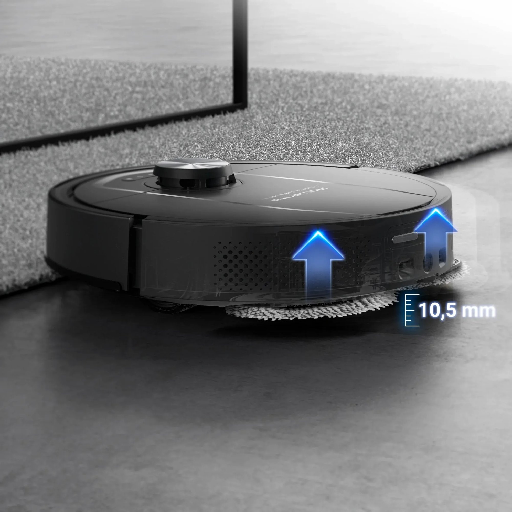 Потужність всмоктування до 10 000 Па гарантує глибоке очищення всіх типів підлог — від плитки та ламінату до килимів — навіть найдрібніший пил та сміття не залишаться непоміченими. Робот використовує технологію LiDAR 360° для розумної навігації, що дозволяє планомірно проходити всю кімнату, уникати перешкод та не пропускати жодного сантиметра.
