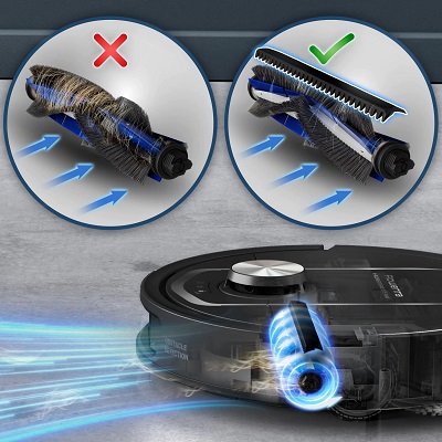 Подвійні обертові мопи та розширена зона очищення ефективно видаляють навіть найстійкіші плями, включаючи забруднення у кутах та на важкодоступних ділянках. Інноваційна система Anti-Tangle запобігає намотуванню волосся на щітки, забезпечуючи тривалу та безперебійну роботу. Для різних типів поверхонь передбачено автоматичне підняття мопа на килимах, що захищає покриття від зайвої вологи та залишає їх сухими та чистими.