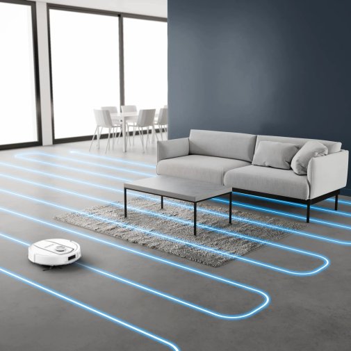 Для навігації робот використовує технологію LiDAR 360°, яка дозволяє методично прибирати приміщення, уникати перешкод і не залишати пропущених зон. Управління здійснюється через зручний мобільний застосунок, що дозволяє запускати прибирання, обирати режими роботи та контролювати процес дистанційно.