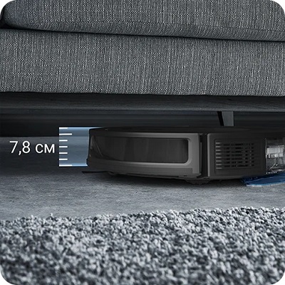 Завдяки розумній лазерній навігації робот постійно оновлює мапу оселі, запам’ятовує розташування кімнат і перешкод та рухається логічно й акуратно. Ультратонкий корпус дозволяє йому без проблем заїжджати під ліжка, дивани та інші меблі, прибираючи там, де звичайні пилососи часто не дістають.