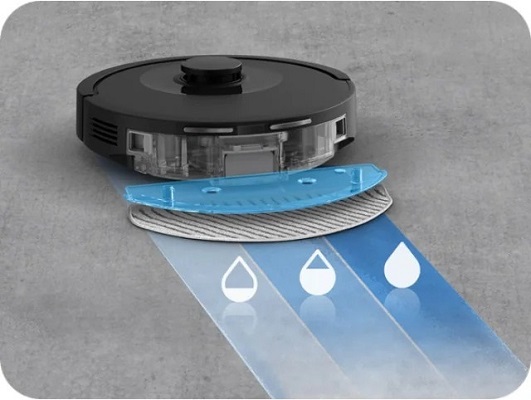 Система Smart Aqua Power забезпечує розумне вологе прибирання з трьома рівнями подачі води, що дозволяє оптимізувати догляд залежно від типу покриття: від ламінату до плитки. При цьому робот-пилосос прибирає ефективно на всіх типах поверхні, не залишаючи розводів.