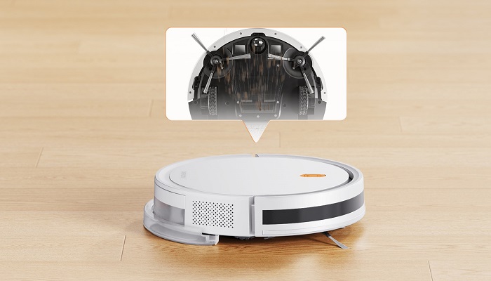 Модель підтримує не лише сухе, а й вологе прибирання — резервуар для води з фільтром та насадка з мікрофібри рівномірно зволожують підлогу, легко видаляючи сліди від взуття чи лап тварин. При збиранні робот працює за зигзагоподібною траєкторією, щоб уникати пропусків і забезпечувати повне покриття площі. Він оснащений інтелектуальними датчиками, які дозволяють гнучко об’їжджати перешкоди, не застрягати біля меблів, а також миттєво від’їжджати назад при виявленні сходів, запобігаючи падінню. Крім того, пристрій здатен подолати пороги, що робить його універсальним для різних приміщень.