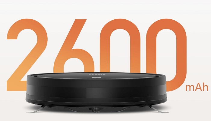 Живиться пилосос від акумулятора місткістю 2600 мАг, чого вистачає на до 110 хвилин роботи у стандартному режимі — цього часу достатньо для прибирання цілого будинку.