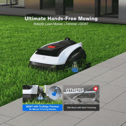 роботизована газонокосарка з інтегрованим тримером Косіння без зусиль, навіть уздовж країв: тример TruEdge автоматизує точне підрізання кромки газону (знайомий інструмент для обробки країв, тепер повністю автоматизований) та забезпечує бездоганний стан газону без зайвих зусиль.