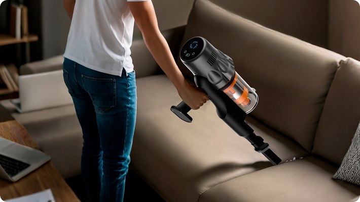 Для максимальної зручності передбачена трансформація у компактний ручний пилосос, що дозволяє легко очищати меблі, полиці чи салон автомобіля. У комплекті є міні-турбощітка, яка ефективно збирає шерсть і пил із текстильних поверхонь.