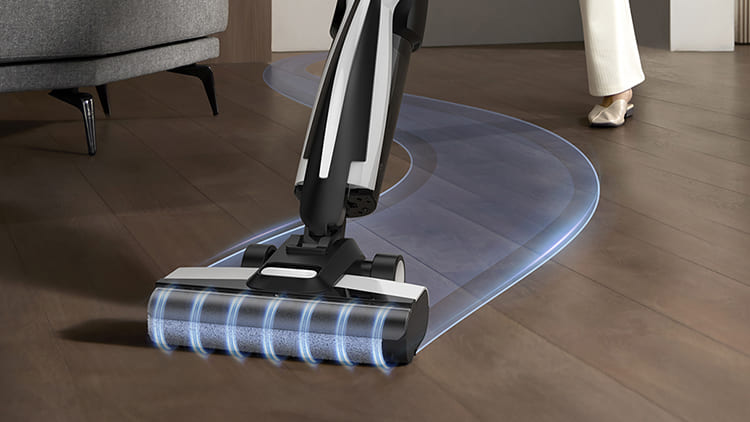 Завдяки частоті обертання двигуна 115 000 об/хв пристрій створює потужний турбопотік, який забезпечує стабільне й глибоке очищення будь-яких поверхонь. Унікальна щітка, що щільно прилягає до стін і меблів, дозволяє пилососу дістатися навіть у найвужчі щілини — під диваном, ліжком або в кутах кімнати, гарантуючи повну чистоту в кожному куточку вашого дому.
