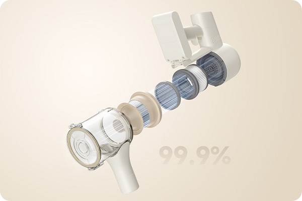 Модель оснащена п’ятишаровою системою фільтрації, включно з HEPA-фільтром, що промивається під водою. Це забезпечує до 99,9% очищення повітря та підтримує свіжість у приміщенні. Завдяки оптимізованій щітці пристрій ефективно працює на будь-яких покриттях — від м’яких килимів до гладких твердих підлог, запобігаючи заплутуванню волосся та дрібного сміття.
