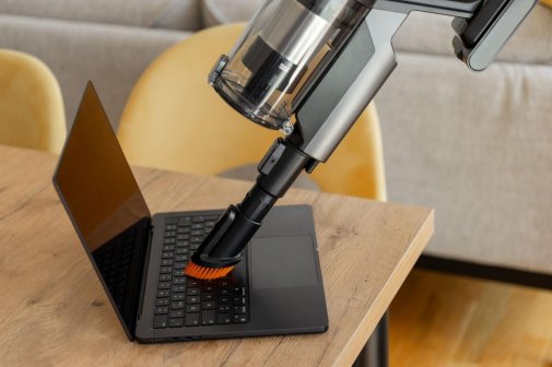 Інтелектуальні функції включають LED-дисплей з індикаторами заряду та наповнення, світлодіодне підсвічування на щітці для видимості прихованого пилу, а датчик забруднення автоматично регулює потужність всмоктування, сигналізуючи кольоровими індикаторами від ніжно-блакитного до фіолетового для особливо брудних ділянок. Міні-турбощітка дозволяє глибоко очищати дивани, подушки, автомобільні сидіння та інші текстильні поверхні, видаляючи пил, волосся та крихти у важкодоступних місцях.
