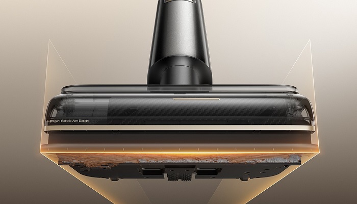 Особливою перевагою стала технологія EdgeCoverage, яка дозволяє прибирати пил і вологу до самого краю уздовж плінтусів, у кутах та біля ніжок меблів. Висувний мікроскребок синхронізується з рухом щітки: під час руху вперед він дістає до краю поверхні, а при русі назад збирає залишки вологи. Після завершення прибирання скребок автоматично промивається в системі самоочищення, що повністю виключає ручний догляд.
