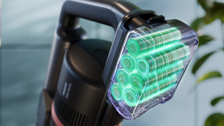 Завдяки змінному акумулятору, пилосос може працювати до 80 хвилин в екорежимі або до 30 хвилин у турборежимі, дозволяючи прибрати весь дім без підзарядки. Для ще тривалішого прибирання можна придбати додаткові батареї та зарядну станцію, щоб подвоїти автономність.