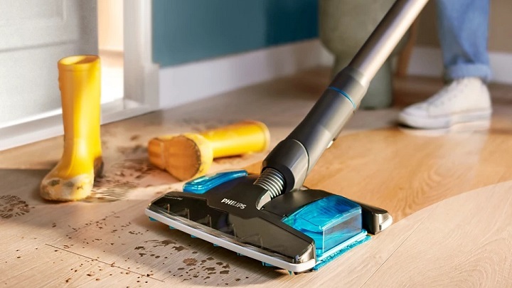 Philips Aqua Series 8000 дозволяє пилососити та мити підлогу одночасно. Подвійні канали всмоктування — спереду та ззаду — видаляють пил і плями незалежно від напрямку руху. Це не лише скорочує час прибирання, а й знищує до 99% бактерій, залишаючи поверхні бездоганно чистими.