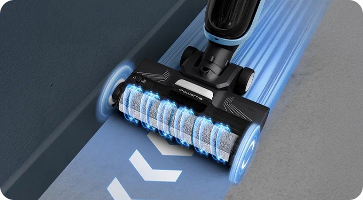 В основі роботи моделі — моторизований преміальний валик із мікрофібри, який поєднує делікатний догляд за поверхнею з високою ефективністю очищення. Завдяки технології подвійного волокна валик дбайливо очищає навіть чутливі підлогові покриття, не знижуючи продуктивності. Функція розумного всмоктування з автоматичним обертанням валика дозволяє одночасно пилососити та мити підлогу, значно скорочуючи час прибирання.