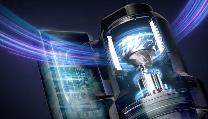 Серцем пилососа є фірмовий двигун HexaJet з Digital Inverter технологією, який розвиває максимальну потужність всмоктування 400 Вт у режимі Jet Mode — рекордний показник для бездротових пилососів, підтверджений незалежними випробуваннями за стандартом IEC 62885-4. Максимальне споживання потужності — 1050 Вт. Двигун оснащений шестикутною конструкцією статора та дифузором другого ступеня, що підвищує ефективність повітряного потоку і досягає швидкості обертання до 148 000 об/хв.