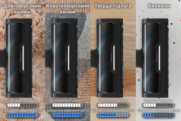 Ключова особливість моделі — режим AI Cleaning Mode 2.0, сертифікований UL Solutions як перший у світі пилосос із ШІ для бездротових вертикальних моделей. Система аналізує тип покриття (паркет, килим різної висоти), навантаження на щітку та тиск повітря, автоматично регулюючи потужність всмоктування та швидкість обертання щітки. У режимі AI зі щіткою Slim LED Brush+ споживання акумулятора знижується на 21%, маневреність підвищується на 8%; зі щіткою Active Dual Brush — економія складає 14%, маневреність зростає на 6%.