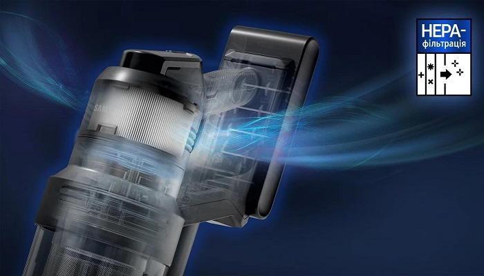 Система фільтрації HEPA з п'ятьма ступенями очищення затримує 99,999% дрібних частинок розміром від 0,5 мкм, що підтверджено тестами SGS-IBR Laboratories за стандартом ASTM F3150. Це робить пилосос оптимальним вибором для алергіків та сімей з домашніми тваринами. Пилозбірник повністю знімний та придатний для миття.