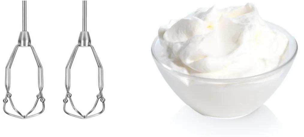 Інноваційні вінчики FineCreamer дозволяють отримати легкі та повітряні суміші за короткий час. Маленькі кульки на вінчиках захоплюють більше повітря, що робить безе, креми та вершки більш об’ємними й повітряними. Для роботи з густим тістом передбачені гаки для тіста з нержавіючої сталі, які легко замішують будь-який вид тіста, включно з домашнім хлібом або піцою.