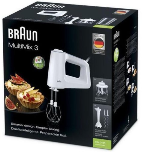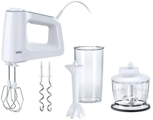 Braun HM 3135 дозволяє збивати білки, готувати креми й глазур, замішувати тісто для випічки, створювати коктейлі та соуси, а також подрібнювати горіхи, шоколад чи спеції. Продумана конструкція, багата комплектація та зручність у використанні роблять цю модель практичним рішенням для щоденного приготування різноманітних страв.