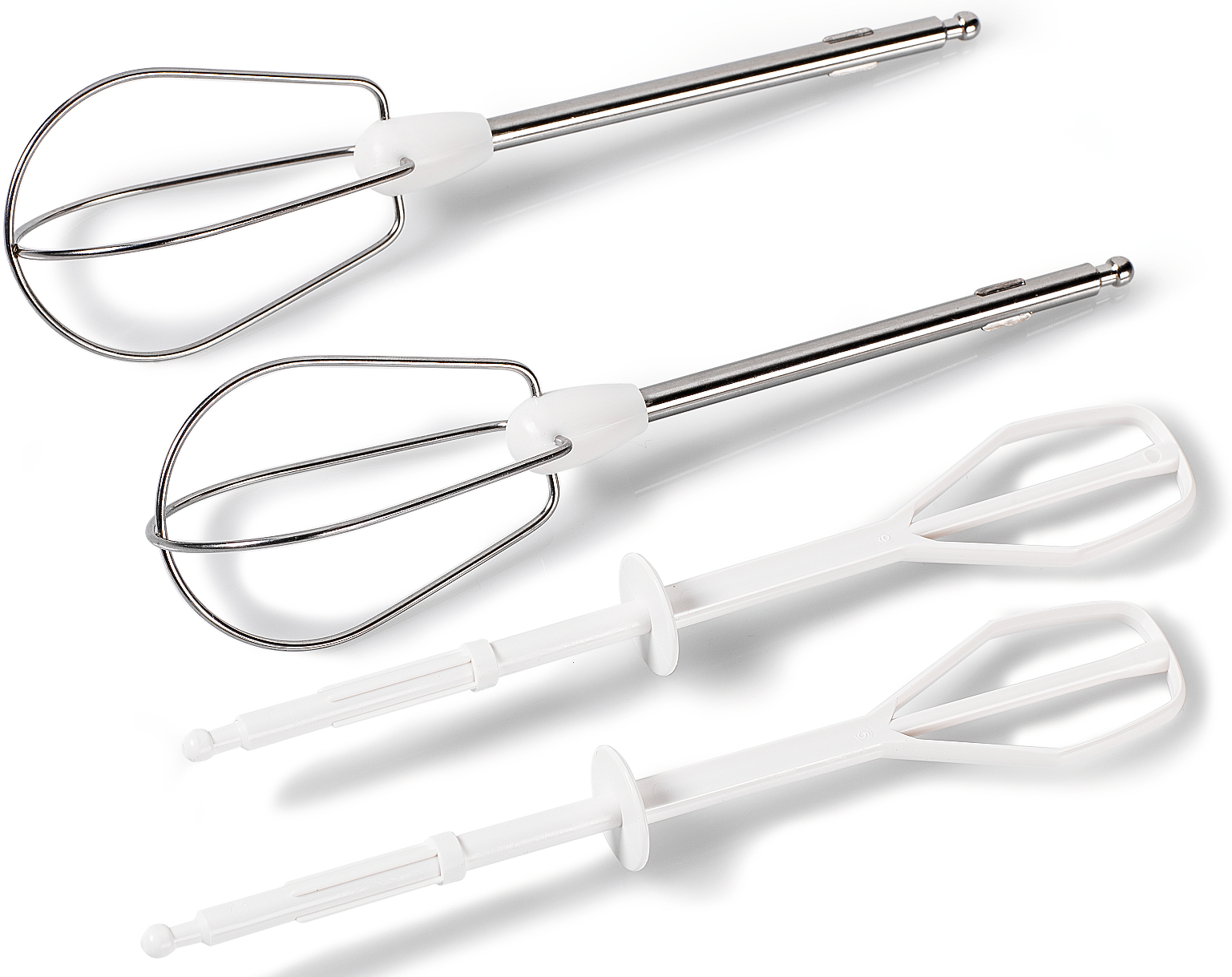 У комплекті передбачені як пластикові, так і металеві вінчики, що розширює можливості використання: пластикові ідеально підходять для приготування соусів і ніжних сумішей, а металеві — для більш інтенсивного збивання. Така універсальність робить міксер зручним інструментом для щоденних кулінарних експериментів.