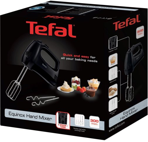 Міксер TEFAL EQUINOX HT310811 — це якісний та надійний електричний міксер, який стане незамінним помічником під час приготування різноманітного тіста та кремів до десертів. Він має потужність 300 Вт та 5 швидкостей, що дозволяє легко змішувати різні інгредієнти зі швидкістю, яка підходить вашим потребам.