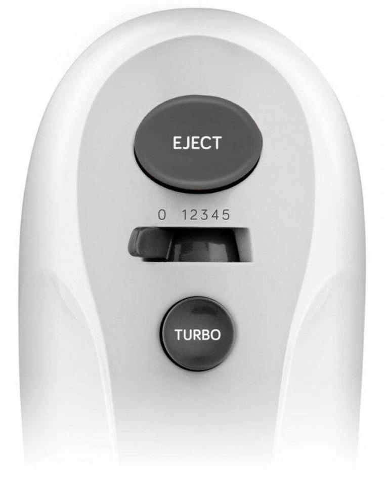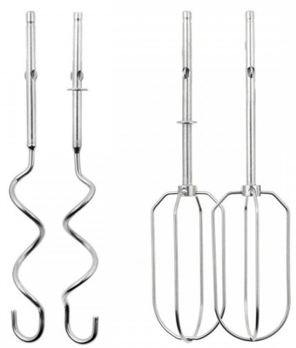 Комплект включає вінчики для збивання та замішування, що забезпечує максимальну універсальність. Ви зможете працювати як з легкими сумішами для кремів та білків, так і з густим тістом для хліба або піци. Кнопка викидання вінчиків дозволяє легко знімати насадки для очищення або заміни, роблячи догляд за міксером максимально зручним.