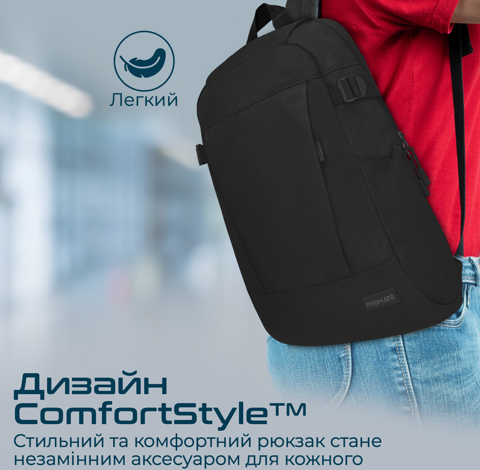 Promate Birger — це зручний та легкий рюкзак, ідеальний для повсякденних подорожей. Пересувайся містом з комфортом разом з ергономічним супутником за спиною.