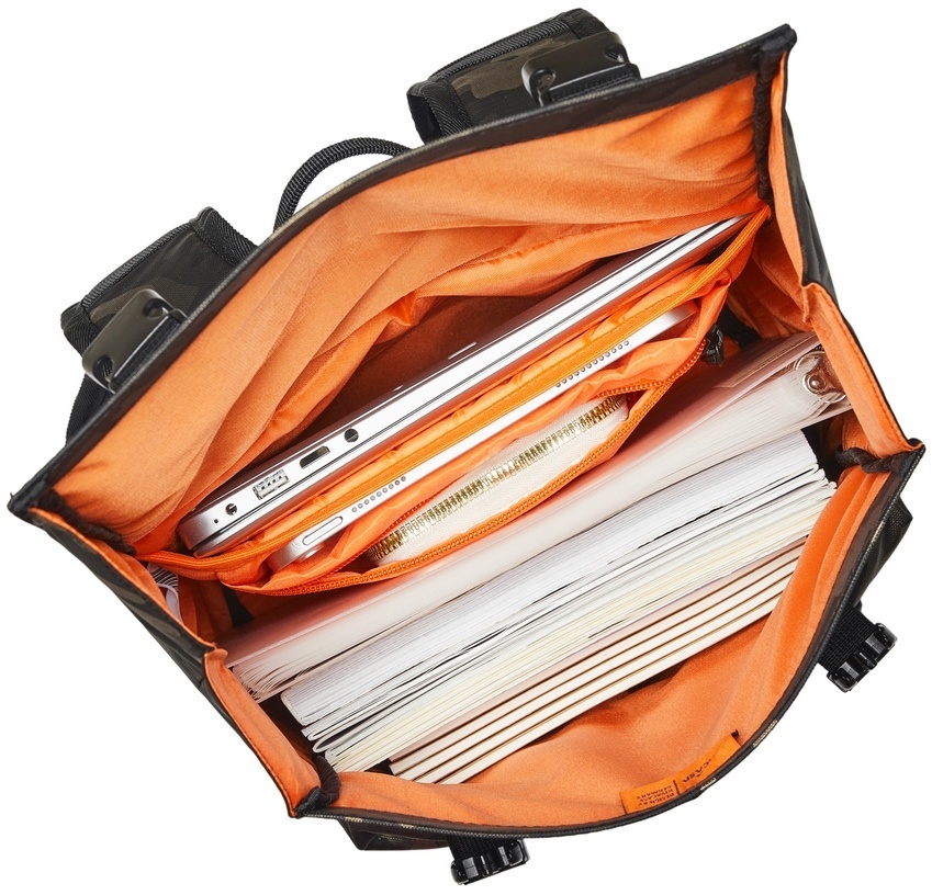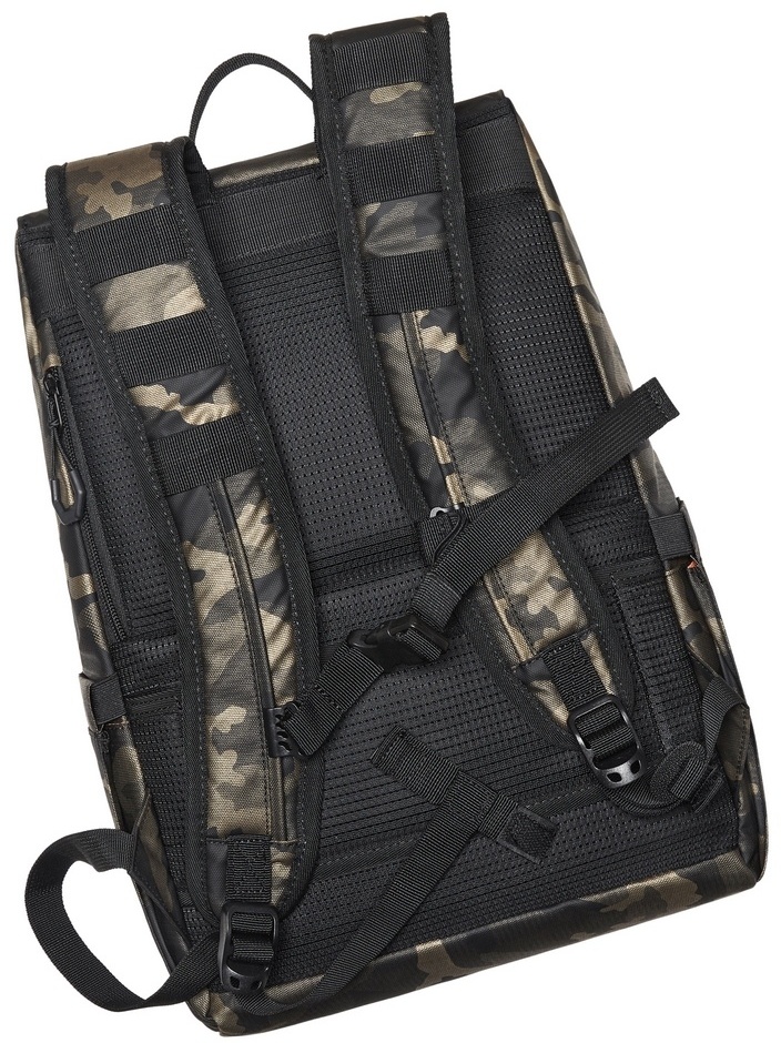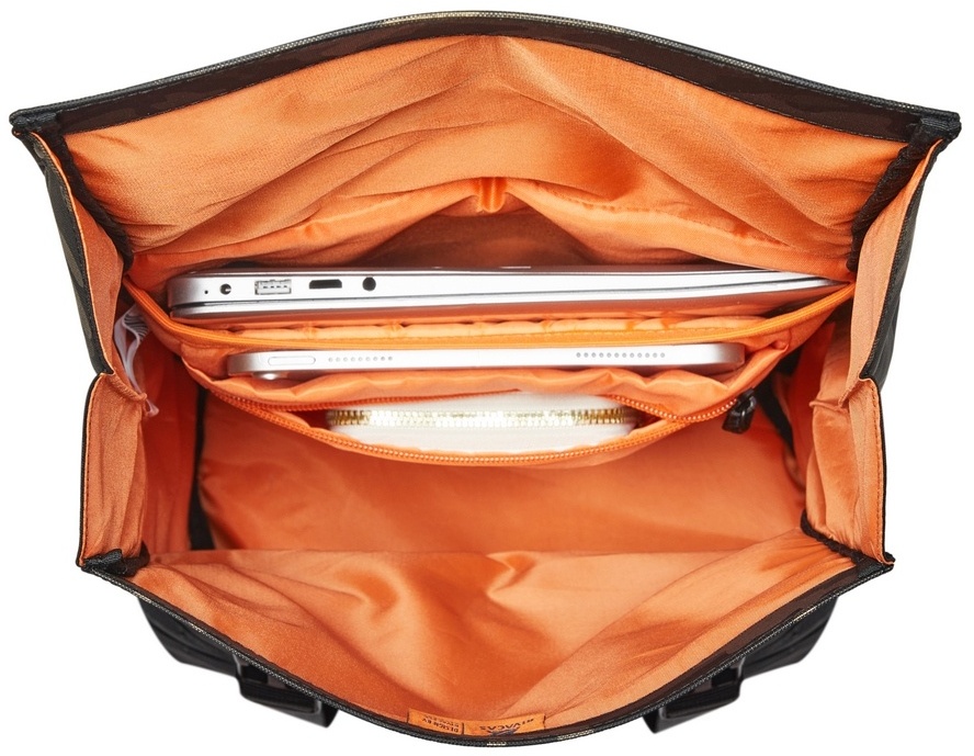 Рюкзак має містке основне відділення об’ємом 15 літрів. Особливістю конструкції є застібка зі згортанням верхнього клапана в рулон, що дає можливість значно змінювати об'єм рюкзака. Усередині є кишені для ноутбука до 15,6 дюйма та планшета до 11 дюймів, а також зручний передній відсік із застібкою для смартфона, документів чи аксесуарів із карабіном для ключів. На задній стінці є ремінь кріплення до багажної сумки й прихована кишеня на блискавці для паспорта, гаманця.