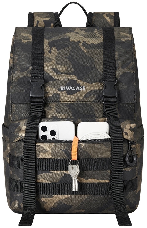 Рюкзак Riva Sherwood 7621 — це стильний і практичний вибір для активних людей, які цінують функціональність і сучасний дизайн. Коричневий камуфляжний принт у поєднанні з елементами MOLLE-плетіння надає рюкзаку урбаністичного військового стилю, підкреслюючи його міцність і універсальність.