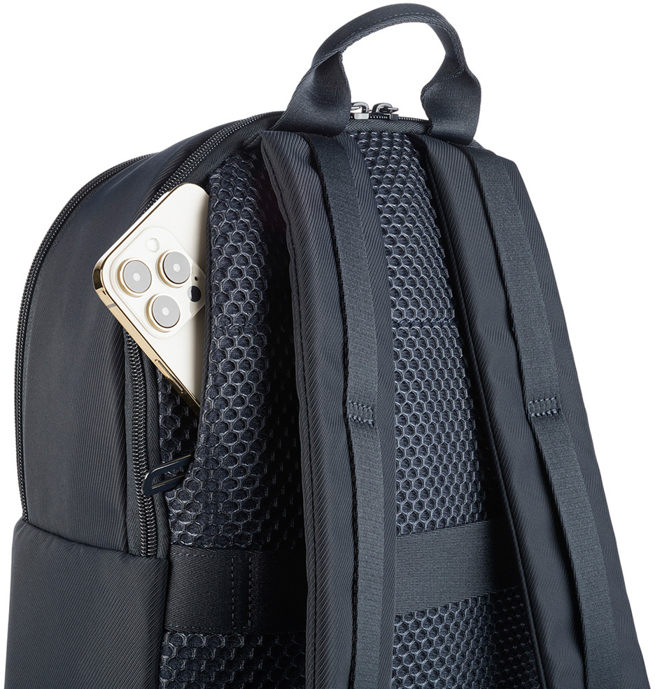 Зовнішні розміри рюкзака становлять 29×43×16 см, що робить його достатньо компактним для щоденного використання, але водночас містким для всіх необхідних речей. Матеріал із переробленого пластику не лише екологічний, але й водостійкий, що захищає вміст від легкого дощу чи бризок. Ергономічні лямки з м’якою підкладкою та спинка, що дихає, забезпечують комфорт під час тривалого носіння, а міцна верхня ручка дозволяє зручно переносити рюкзак у руці.