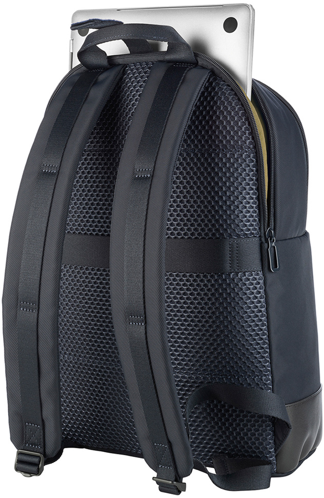 Рюкзак Tucano Fine — це стильний і функціональний аксесуар, призначений для ноутбуків із діагоналлю до 15,6 дюйма та MacBook Pro 16 дюймів. Виготовлений із високоякісного матеріалу, отриманого з переробленого пластику, він поєднує екологічність, практичність і сучасний дизайн, що робить його ідеальним вибором для студентів, професіоналів і тих, хто цінує елегантність у повсякденному житті. Доступний у чорному кольорі, рюкзак вирізняється мінімалістичною естетикою з акцентами зі штучної шкіри, що додають преміального вигляду.