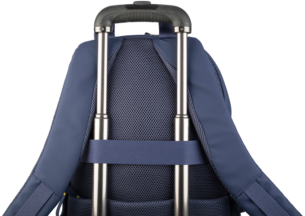 Для зручності у подорожах рюкзак оснащено спеціальним ременем для кріплення на валізу, який дозволяє зафіксувати його на ручці чемодана — ідеальне рішення для аеропортів та вокзалів.